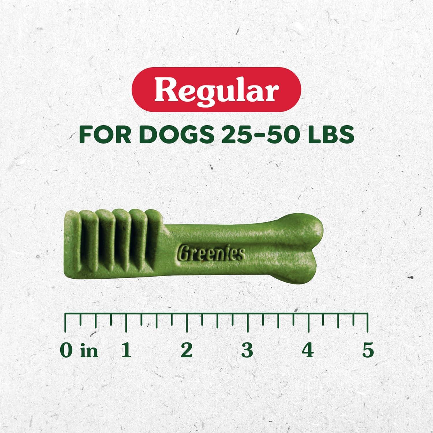 One Greenies Original Dental Treat a day is all it takes for clean teeth, fresh breath, and a happy dog. Your dog can't wait to sink their teeth into these delicious, original-flavor dental dog breath chews because they feature a delightfully chewy texture that fights plaque and tartar. Irresistibly tasty and incredibly powerful, Greenies Treats for Dogs are vet-recommended for at-home oral care. Best of all, these natural dog breath treats are made with highly soluble ingredients that are safe and easy to digest. Give your dog the mouth-wowing treat that helps promote their overall health with Greenies Dog Treats.